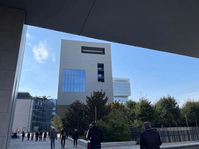 La journée a commencé par la visite du Scalo di Porta Romana, ancienne friche ferroviaire en reconversion, futur Village Olympique Milan-Cortina 2026. Le projet, porté par COIMA SGR, Covivio, Prada Holding, prévoit une reconversion en logements étudiants dès septembre 2026. Les bâtiments sont conçus selon les standards LEED® et NZEB, avec une forte présence de bois, d’acier et de solutions préfabriquées.